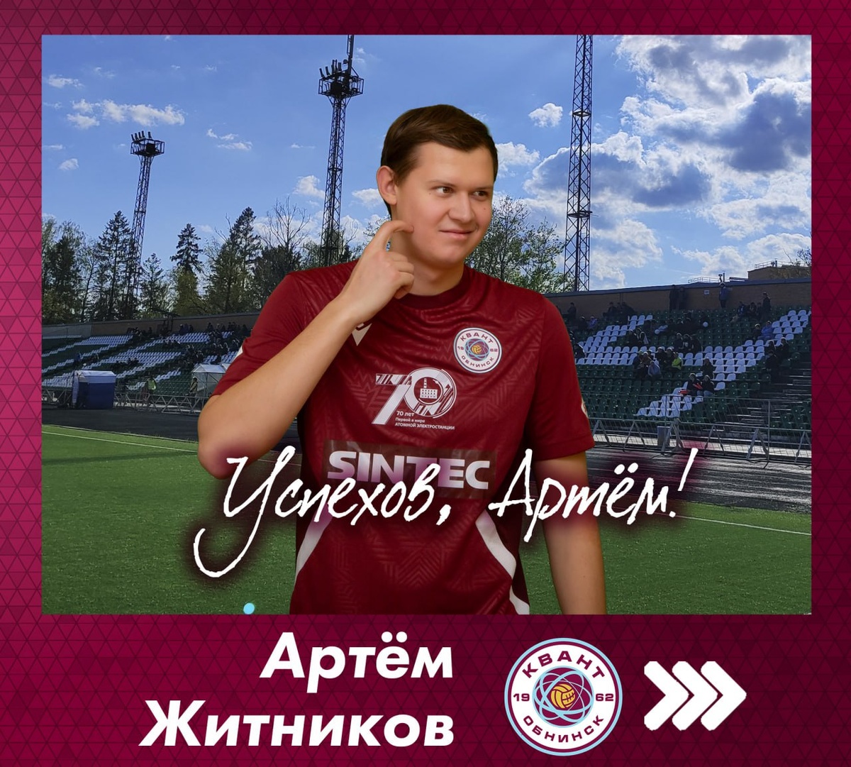 " 💠➡️ Продолжаем сообщать об игроках, которые в это межсезонье решили завершить свою профессиональную карьеру. Артём - воспитанник Кванта, во Второй лиге, начиная с 2019 года, сыграл за родной клуб 1️⃣0️⃣2️⃣ матча! Стал автором 2️⃣ голов. В минувшем сезоне хавбек вышел на поле лишь однажды, и вот теперь решил направить свои усилия на другие сферы жизни. ФК "Квант" благодарит Артёма за годы, отданные нашему клубу! ✊ Надеемся, что они останутся ярким этапом в твоей жизни. Желаем Тёме всего самого наилучшего! Всегда будем рады видеть в нашем футбольном доме и на трибунах! 🤝 До свиданья!