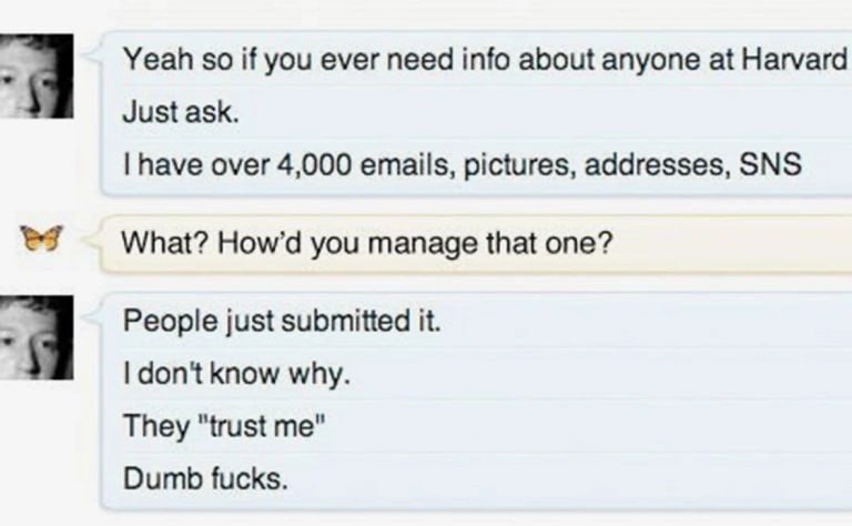 Β». Π¦ΡΠΊΠ΅ΡΠ±Π΅ΡΠ³ ΡΠΌΠ΅ΡΠ»ΡΡ Π½Π°Π΄ ΠΏΠΎΠ»ΡΠ·ΠΎΠ²Π°ΡΠ΅Π»ΡΠΌΠΈ ΡΠΎΡΡΠ΅ΡΠΈ Facebook Ρ ΡΠ°ΠΌΠΎΠ³ΠΎ Π΅Ρ Π·Π°ΠΏΡΡΠΊΠ° ΠΡΠ½ΠΎΠ²Π°ΡΠ΅Π»Ρ Telegram ΠΎΠΏΡΠ±Π»ΠΈΠΊΠΎΠ²Π°Π» ΠΏΠ΅ΡΠ΅ΠΏΠΈΡΠΊΡ 2004 Π³ΠΎΠ΄Π° (Π³ΠΎΠ΄ Π·Π°ΠΏΡΡΠΊΠ° ΡΠΎΡΡΠ΅ΡΠΈ), Π³Π΄Π΅ Π¦ΡΠΊΠ΅ΡΠ±Π΅ΡΠ³ Π½Π°Π·ΡΠ²Π°Π» ΠΏΠΎΠ»ΡΠ·ΠΎΠ²Π°ΡΠ΅Π»Π΅ΠΉ Facebook Β«ΡΡΠΏΠΈΡΠ°ΠΌΠΈΒ» Π·Π° Π΄ΠΎΠ²Π΅ΡΠΈΠ΅ ΠΊ ΠΏΠ΅ΡΠ΅Π΄Π°ΡΠ΅ ΡΠ²ΠΎΠΈΡ