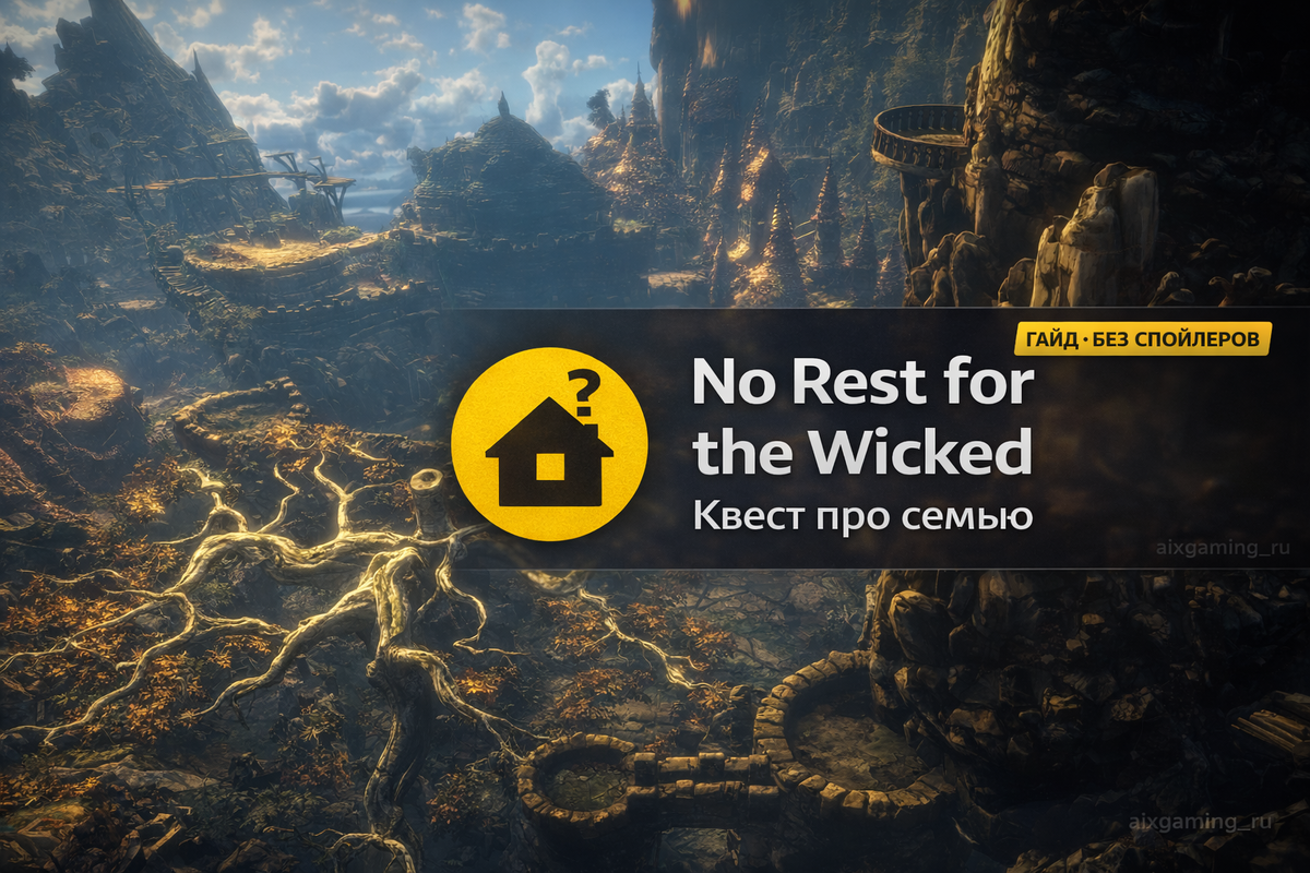 Я сейчас прохожу No Rest for the Wicked и это тот редкий случай, когда “изометрия” ощущается как соулс-боёвка: тайминги, выносливость, аккуратные перекаты и наказание за ошибки. Кайф. Но есть момент, на котором я сам завис в начале: квест “проведать семью” после захода в город. Вроде задача простая — “сходи в дом”, а по факту многие упираются в неочевидную механику, и с первого раза не понимают, что делать дальше. Я расписал по этапам, как закрыть квест без лишних метаний. После того как ты впервые заходишь в Sacrament, у тебя появляется NPC, который просит проведать семью в бедном районе. Что важно: Совет: после разговора открой журнал и убедись, что цель именно “проверить семью / дом в бедном районе”. Логика маршрута такая: