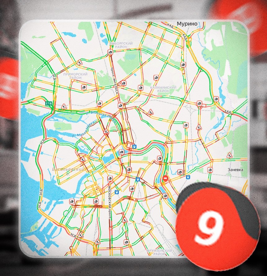 ❗️Петербург полностью парализовало — в городе наблюдаются пробки в 9 баллов