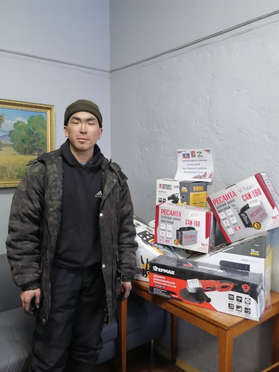 Отрадно, что среди нашей молодёжи есть отзывчивые, неравнодушные, активные ребята. Один из них Ыданчап Омак Байыр-оолович - активист, волонтер, житель села Сарыг-Сеп, работник ООО «Коммунальное хозяйство». Омак проявил инициативу, гражданскую позицию и передал шлифовальную машину, сварочный аппарат, паяльную лампу и бензопилу на сумму 57005 рублей. Все инструменты будут направлены в зону СВО. Собранный гуманитарный груз от района будет доставлен в г. Кызыл 6 февраля 2026 года. Сердечно благодарим за доброту и милосердие, которые вернутся к вам сторицей, Омак Байыр-оолович! По информации Администрации Каа-Хемского района