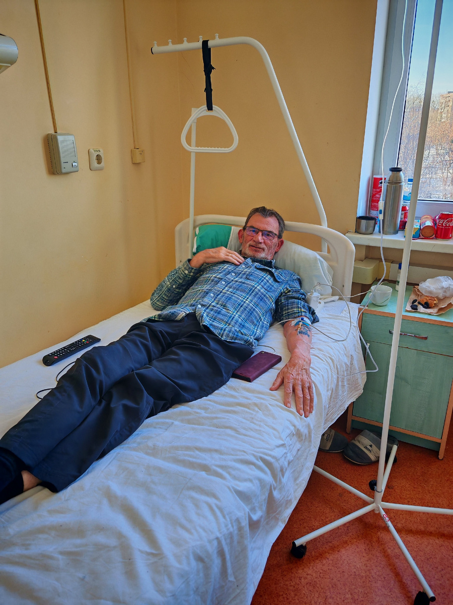 Когда я сказала, что моему мужу будут делать операцию 26 января, я неправильно всё поняла- на этот день была назначена госпитализация. Мы собрали кучу обследований и анализов, пришли 26-го к сосудистому хирургу, он посмотрел результаты, ему все понравилось и нас отправили сдаваться в приемный покой. Там девушка оформила документы и повела нас по лабиринтам Калининградской областной клинической больницы. Больница старинная, огромная, блуждая по коридорам так и хочется завопить: "кто так строит?", а чтобы найти дорогу назад нужно иметь в кармане клубок с нитью Ариадны, не меньше. Положили Мариуса в палату к мужчине его возраста. Нормальная палата- с туалетом, душем, холодильником, но Мариус начал нудеть, чтоб я попросила платную палату, потому что сосед не говорит по-английски. Да и мне так было лучше, честно говоря, потому что я целый день в больнице и соседу вряд ли нравилось, что какая-то тётка торчит в палате целый день. На следующий день платная палата освободилась и мы переехали.