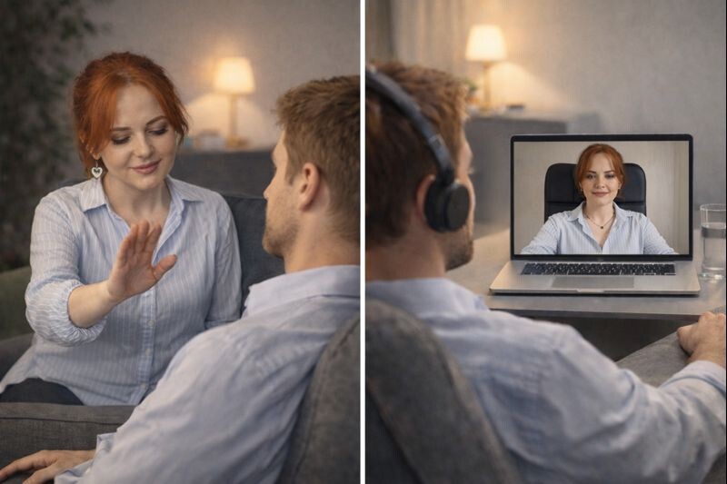 Вы слышите мой голос. Вы видите меня на экране - этого достаточно для установления контакта. Вы у себя дома - в безопасном, знакомом пространстве. Часто это даже лучше, чем чужой кабинет.