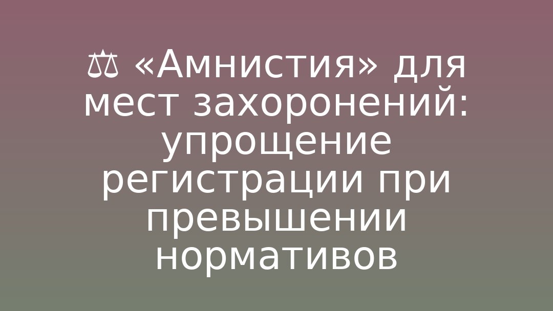 Инициатива предусматривает оформление участков по фактическим параметрам без взыскания платы за сверхнорматив, по аналогии с «дачной амнистией». Авторы отмечают массовый характер непреднамеренных нарушений из‑за отсутствия информированности граждан; действующие санкции — отказ в регистрации, требование уменьшить габариты, запрет на последующие захоронения и доплата за превышение — предлагается смягчить.