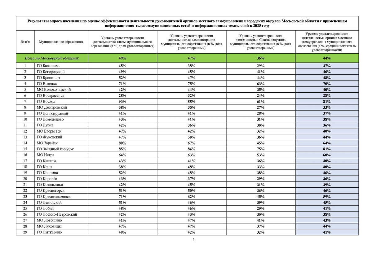 📊Опубликованы результаты опроса населения по оценке эффективности деятельности руководителей органов местного самоуправления МО в 2025 году