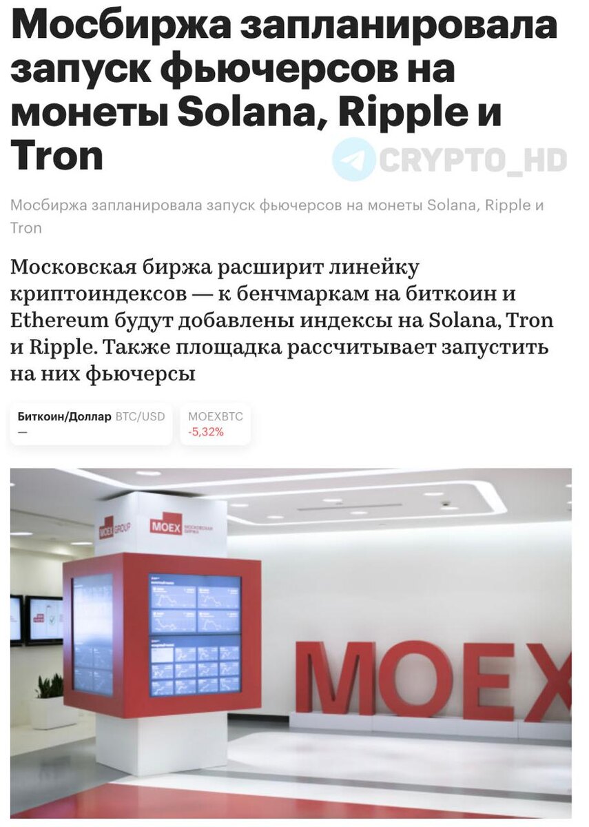🇷🇺 В 2026 году Мосбиржа собирается запустить индексы и фьючерсы на #SOL, #XRP и #TRX.