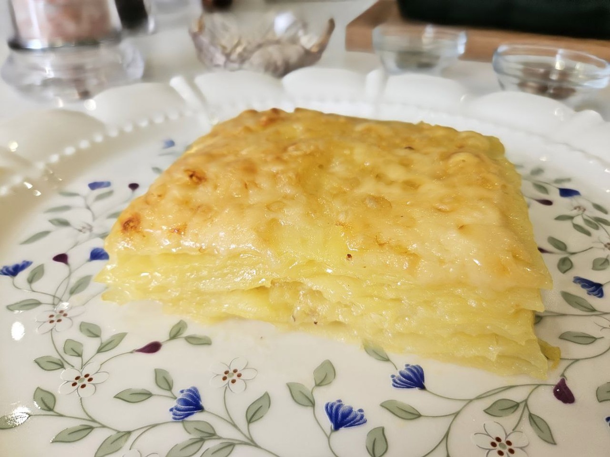 Дорогие гурманы! Французская кухня — это самая изысканная кухня в мире! Это нежность, утонченность и оттенки вкуса, в ней множество секретов и тонкостей. Кстати, вы когда - нибудь задумывались о том, сколько блюд, которые мы любим и едим каждый день дома, родом из Франции? • Круасаны • Эклеры • Жульен • Гренки • Омлет • А сегодня я расскажу о блюде с секретами и красивым названием - гратен дофинуа (это что-то вроде запеканки из картофеля) - в этом картофеле вся суть французской кухни: картошка тоньше бумаги, пропитанная сливками с мускатным вкусом, где вкусы лука и чеснока есть, а кусочков лука и чеснока в блюде вы не найдёте. Как такое возможно? - спросите вы. Есть секреты, которые я сегодня раскрою (обязательно дочитайте статью, чтобы узнать их все) Первый - это секретная техника - инфузия (от лат. infusio — вливание) — техника настаивания жидкости на натуральных ароматизаторах - луке, чесноке, травах (на самом деле ничего сложного). В случае с гратеном - это процесс ароматизация мо