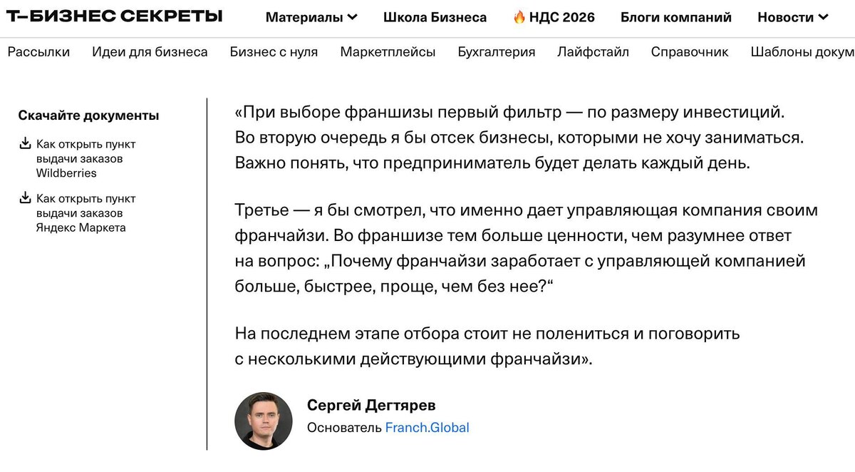 ✏️ Прокомментировал для бизнес-журнала Т-Банка рейтинг франшиз