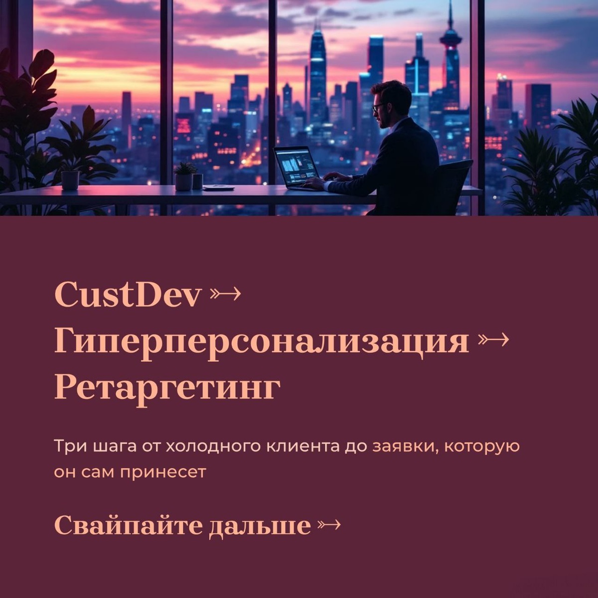 И покажу, на что ее менять в 2026. Твоя «лендинг ➡️ реклама ➡️ заявка» в 2026 работает как факс: шумит, печатает, но всем похуй. Потому что холодному ЛПР (лицу, принимающему решения) нахер не сдались твои общие фразы. Он ищет ответ на свою конкретную, узкую, профессиональную боль. И найдет его сам, пока ты пишешь в блог. Выход - строить не воронки, а персональные коридоры доверия. Начинается все с хирургической точности, а не с дробовика. Связка 1: CustDev → Гиперперсонализированный лендинг → Ретаргетинг, который не бесит. ШАГ 1️⃣: CustDev, который не про «как дела?» Забудь про опросы «какие у вас боли?». Настоящий CustDev - это когда ты выясняешь: 1. Конкретную «ежедневную hуйню», которую клиент терпит, и сколько она стоит в деньгах (не «неудобно», а «теряем 200к в месяц из-за ручных отчетов»). 2. Их личные критерии выбора. Не «качество», а «должно быть API для 1С и техподдержка 24/7». 3. Главное внутреннее возражение, которое убьет сделку («начальник скажет, что мы уже 5 раз пр