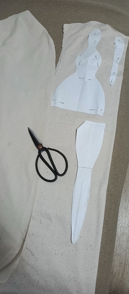 Подобрала ткань,мягкую, теплую, цвета топлёного молока. Раскрой.