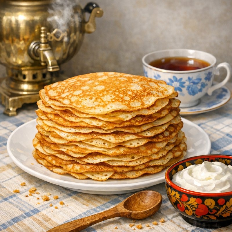Я очень люблю Масленицу, люблю её за вкусные блины, за шумные гулянья и весёлый смех. В первую очередь люблю её за то, что она напоминает нам о наших традициях. Люблю, что в эту неделю все хозяйки готовят вкусные блины и делятся своими рецептами друг с другом, что близкие люди ходят друг к другу в гости, а в воскресенье перед Великим постом просят друг у друга прощения. Ну и конечно я хочу поделиться с вами своим любимым рецептом блинов — простые ингредиенты и понятный процесс помогут приготовить идеальные блины даже тем, кто делает это впервые. Ингредиенты: Как готовить: шаг за шагом Подготовьте основу. В глубокую миску влейте слегка тёплое молоко (не горячее — иначе яйца могут свариться!). Добавьте сахар и яйца. Взбейте смесь венчиком до лёгкой пены и однородности. Смешайте сухие ингредиенты. В отдельной миске соедините муку, соль и соду. Тщательно перемешайте — это поможет соде равномерно распределиться и сделает блины воздушными. Соедините компоненты. Постепенно всыпайте муч
