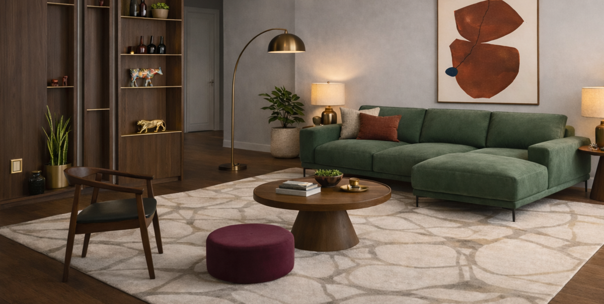 Повторяем трендовую гостиную в духе mid-century modern: тёплое дерево, чистые линии, акцентные формы и немного ретро-настроения.