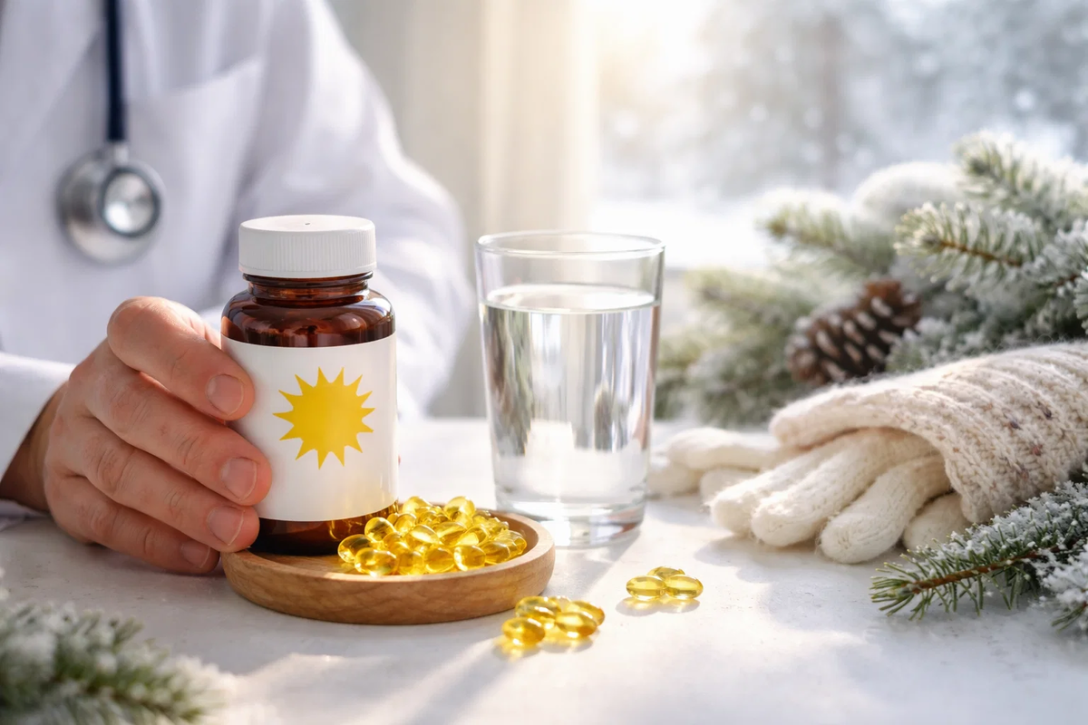 Сколько принимать — самый чувствительный вопрос. Формальные рекомендации для взрослых часто звучат скромно: 600–800 международных единиц в сутки. Это минимальный уровень, который предотвращает грубый дефицит. На практике зимой многим этого недостаточно, особенно если есть факторы риска: избыточный вес, возраст старше 60 лет, тёмный фототип кожи, заболевания кишечника или приём определённых лекарств. В российских клинических рекомендациях профилактические зимние дозы чаще лежат в диапазоне 1500–2000 МЕ. Для большинства здоровых взрослых это разумный и безопасный уровень.