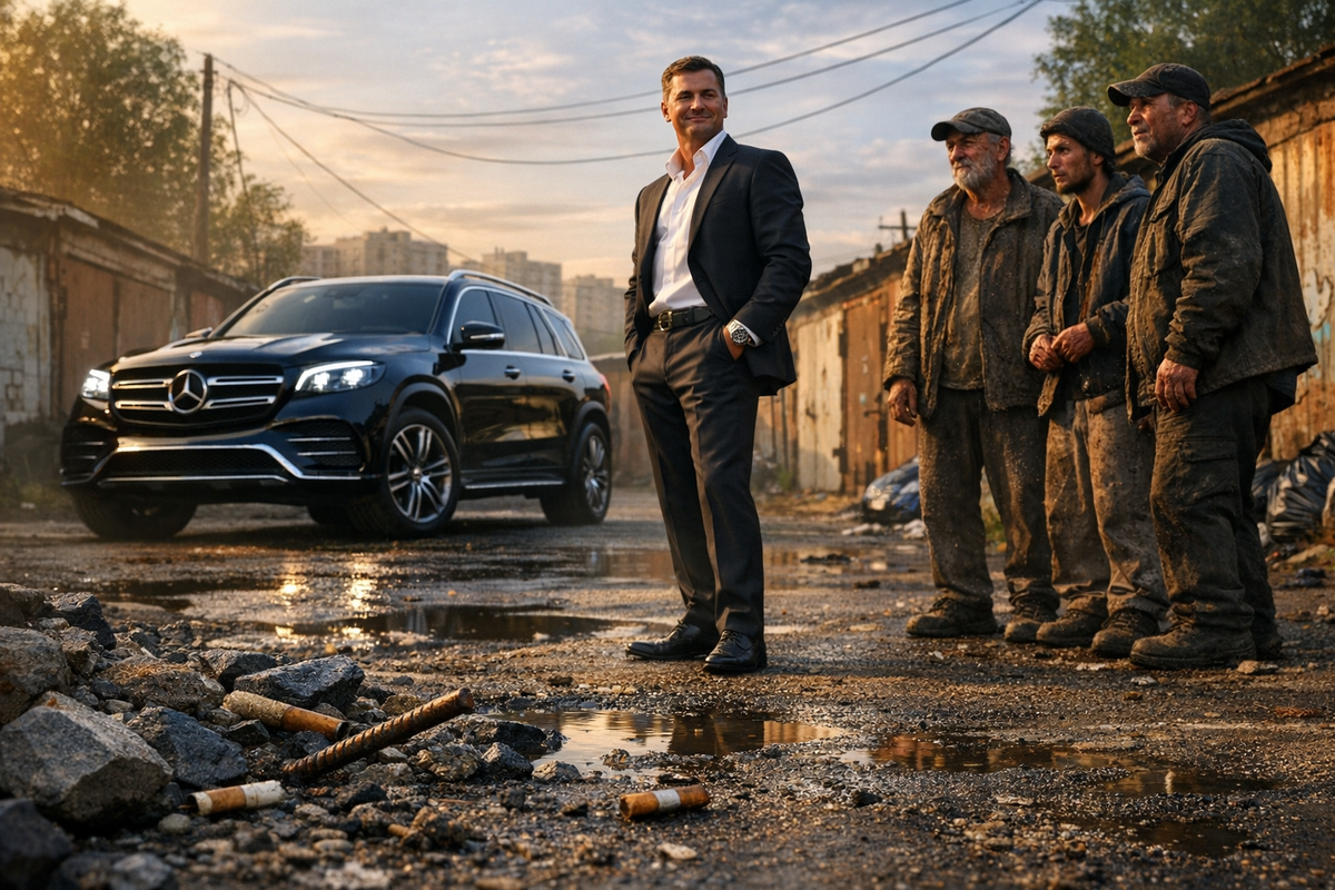Водитель, аккуратно переваливаясь на тяжелом джипе через колдобины пустыря, тихо ругался, но шеф лишь загадочно улыбался, глядя в тонированное стекло. Они встали в отдалении, заглушили двигатель и стали ждать сумерек. Когда обитатели гаража потянулись с промысла, реакция была предсказуемой: завидев сияющий лаком автомобиль посреди свалки, бродяги испуганно шарахались в стороны. Но дикая усталость брала свое — людям хотелось упасть и уснуть, страх уступал место апатии.