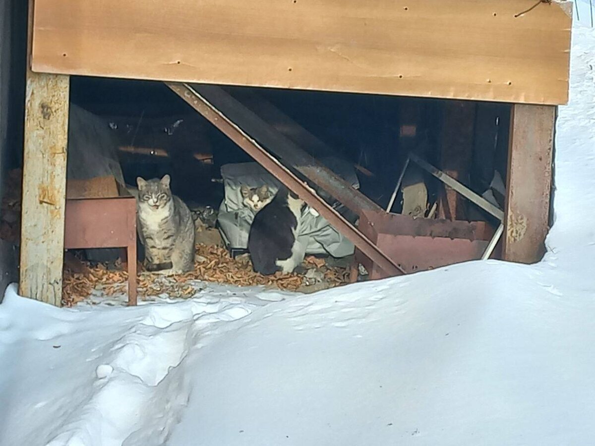Южная, ЗАМЕРЗАЮТ КОТИКИ Люди, спасите несчастные души!!!! Трое котиков, им совсем негде укрыться - рядом никаких теплых мест или подвалов. Еда замерзает моментально, они даже не успевают покушать, перебирают лапками, ужасно мерзнут в такие морозы!!! Вокруг сугробы, очень сложно к ним пробираться Уже забрали оттуда двух кошечек, ресурсов больше нет, разберите хоть по одному😭 Группа https://t.me/dvekoshechki