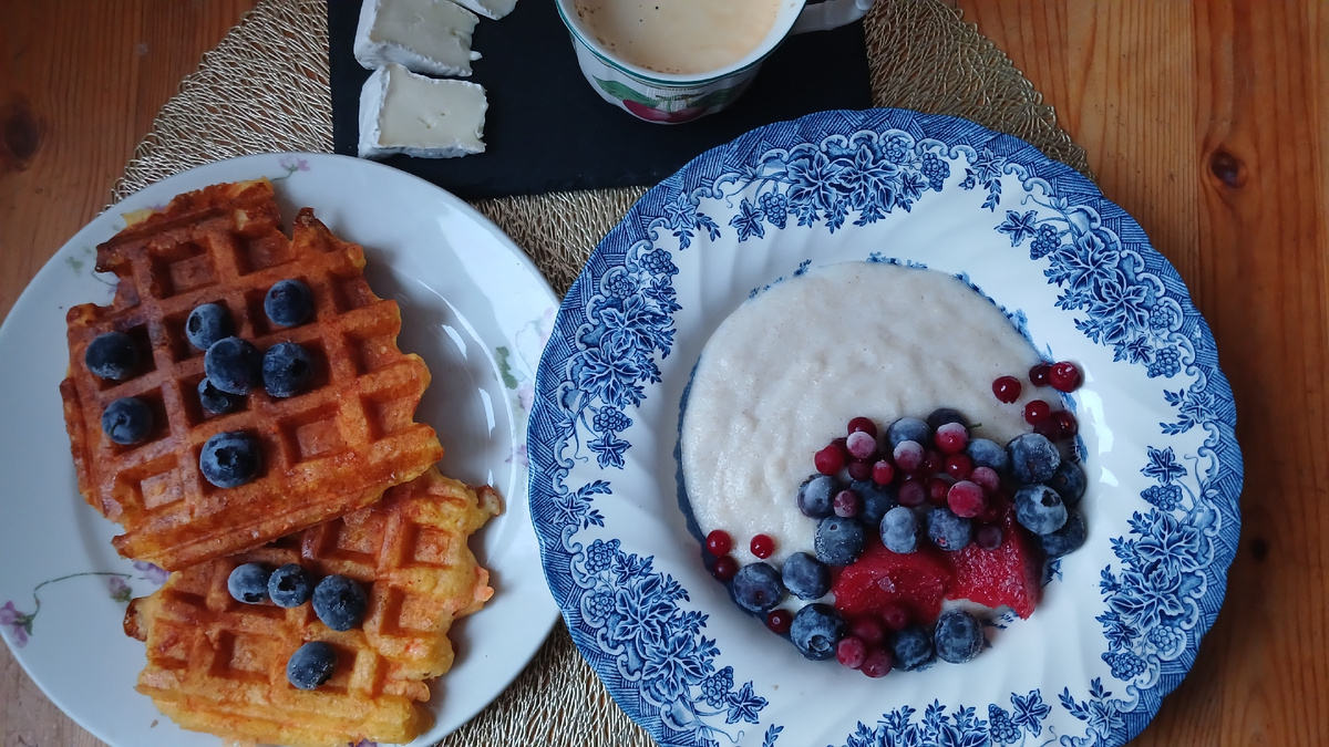 В феврале питаемся на 237 руб в день на человека. Сумма в месяц на питание - 6 634 руб. Завтракаем манкой из полбы и творожно-морковными вафлями. В манку положила ягоды - голубику, бруснику и клубнику. Вафли пекла, как вчерашние, только добавила тертую морковь вместо тыквы. К кофе - сыр бри. Ближе к обеду уехали во Владимир. С собой брали котлеты, овощную нарезку, вафли творожные с морковью, шоколад. Во Владимире у меня было время посидеть в кафе Север Метрополь. В кафе все столики были заняты. Посетители вставали, и их место занимали следующие. Я одна, правда, расположилась за большим столом на 4 человека. Но он был единственным свободным, когда я пришла. Цены в кафе заметно подросли в сравнении с прошлыми визитами. Купила капучино и пирожное "Киевское". Списала 20% стоимости баллами. И следующая чашка кофе для меня будет бесплатной. У них есть акция в приложении - каждая 5-я чашка кофе бесплатно. Вот у меня 4 чашки уже накопились. В следующий раз буду пить кофе без оплаты 😄 Пир