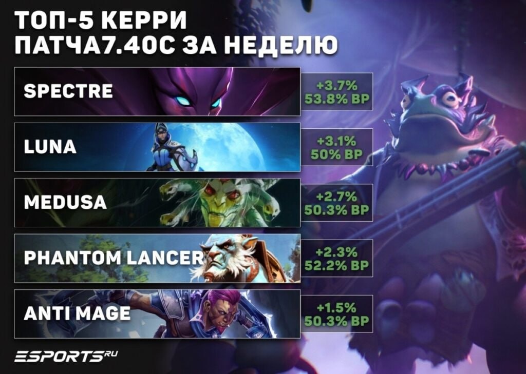🔝 Лучшие герои недели в патче 7.40c — кого пикать в Dota 2 для поднятия ММР