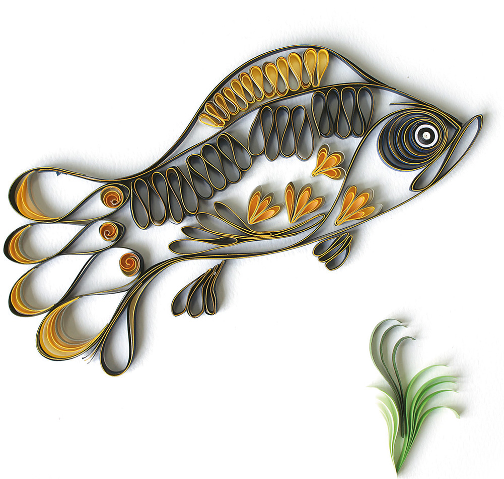 Наши статьи о квиллинге здесь. Дорогие мастера и мастерицы! Сегодня мы погрузимся в создание яркой, роскошной рыбки-мандаринки в технике квиллинг — символа достатка и процветания. В китайской культуре эта рыба ассоциируется с богатством (звучит как «gui» — «благородный, дорогой»), а её образ часто встречается в поэзии и искусстве, подчёркивая красоту природы и изобилие. Наша работа будет смелой, свободной по стилю, с акцентом на характерные черты: плоское тело, крупный рот, короткий хвост, мелкую чешую и выразительные узоры. Используем линии, каплевидные петли, тугие и свободные спирали, завитки и полумесяцы — всё для того, чтобы композиция получилась насыщенной и контрастной. Материалы и цвета полосок (ширина 3–5 мм, длина 50–60 см): Основа — белый картон 30 × 30 см (подойдёт плотный ватман, дизайнерский картон или лист из набора для творчества). Инструменты: слотер (вилочка), пинцет, игольчатый инструмент (или тонкая игла), ножницы, клей ПВА, бамбуковая палочка для разглаживания и со