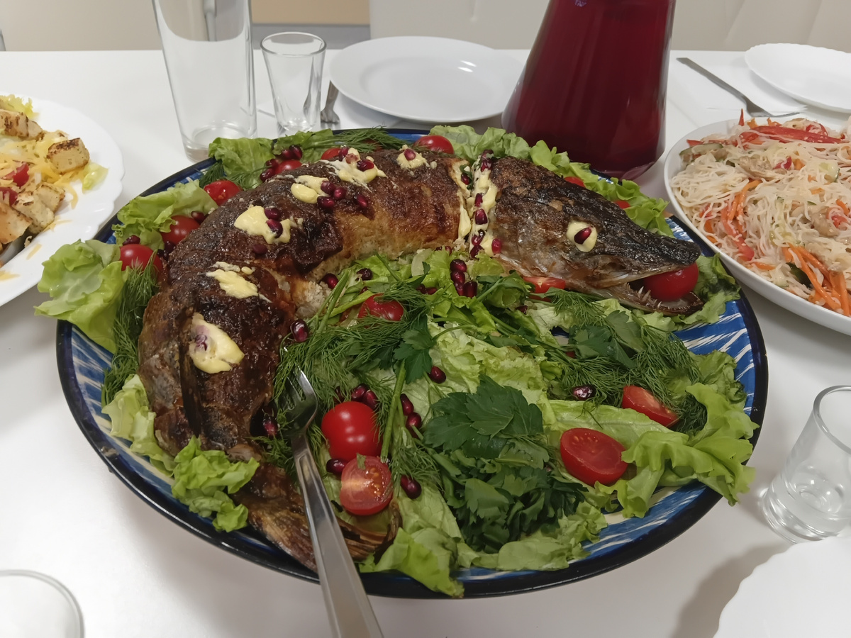 Чего только не было. Долма, салат Цезарь, фунчоза, бутерброды разных видов, кальмары и многое другое.
