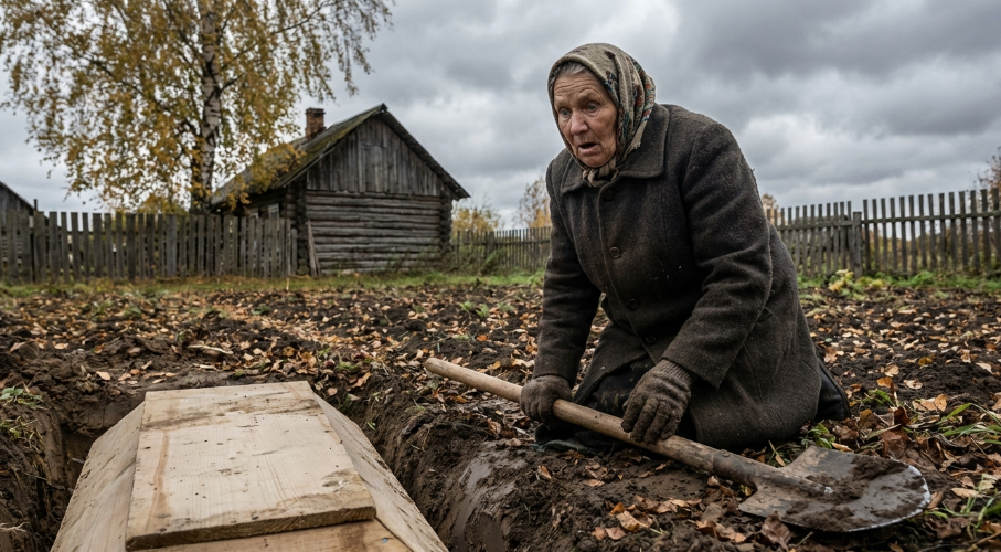 С этими воплями старуха в полном отчаянии рухнула грудью прямо на разверстый гроб. Староста едва успел подхватить её на лету, крепко прижав к себе.