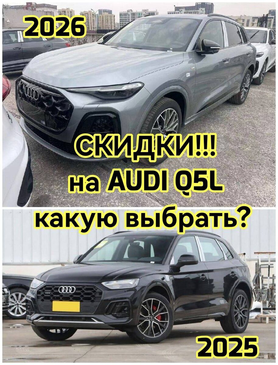 🔥 За последние 3 года я не раз убеждался, что на авторынке бывает выгодное время для покупки. И вроде бы утильсбор подняли, но январское затишье поумерило аппетиты китайцев, плюс к этому неожиданное окреп рубль. И вот здрасьте, пожалуйста, налетай подешевело. По AUDI Q5L в декабре 25 появилось новое поколение, цена на которую успела заметно откатить от начала продаж, так же распродают остатки версии 2025 года. У обоих есть плюсы и минусы, поэтому посчитаем и посравниваем. Q5 в Китае имеет приставку L и по размерам больше варианта из Европы. Длинна 2025 года 4770мм Новая будка 2026 года 4842мм Колесная база 2025: 2907мм; 2026 - 2945мм. Зачем я это пишу, кому AUDI Q5 из Европы был маловат, из Китая может вполне подойти. Ибо для примера размеры VW Touareg: Длинна 4878мм База 2899мм По длиннее кузова Q5L немного уступают на какие-то 3,5 -10см, а по колесной базе( а значит вместимости салона) даже превосходят Туарег🤘 Двигатель AUDI Q5L: 2025 - 245 лошадей 2026 - 204 либо сразу