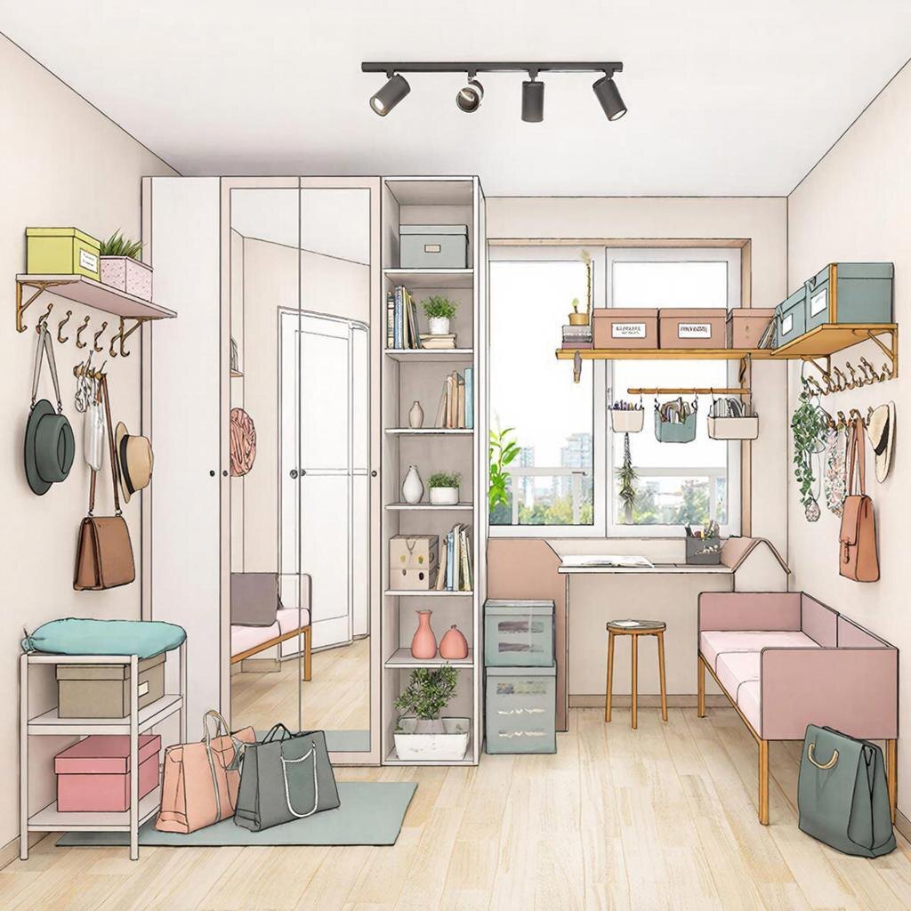 Маленькая квартира ставит перед жильцами непростую задачу — грамотно организовать пространство таким образом, чтобы оно было функциональным, комфортным и визуально привлекательным. Важнейший аспект обустройства небольшой жилплощади — эффективное хранение вещей. Давайте рассмотрим идеи и способы, которые помогут увеличить полезное пространство и создать комфортную обстановку даже в условиях ограниченных квадратных метров. Как увеличить полезное пространство? Используйте высоту помещения Часто свободное пространство над головой остается незадействованным. Чтобы оптимизировать площадь квартиры, обратите внимание на вертикальное расположение мебели и предметов интерьера. Например, установка навесных полок позволит хранить сезонную одежду, обувь, постельное белье и бытовые принадлежности. Шкафчики-купе до потолка расширяют возможности хранения, обеспечивая доступ ко всей площади шкафа сверху донизу. Кроме того, кровати и диваны с подъемными механизмами открывают дополнительное пространство
