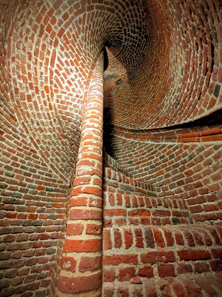 Кирпичная винтовая лестница внутри башни Мута-холла, 15 век, Молдон/ Maldon, Англия.