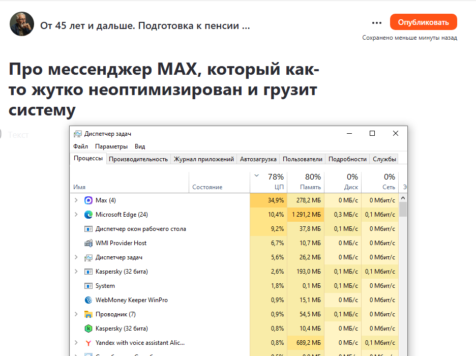 Про мессенджер MAX, который как-то жутко неоптимизирован и грузит систему