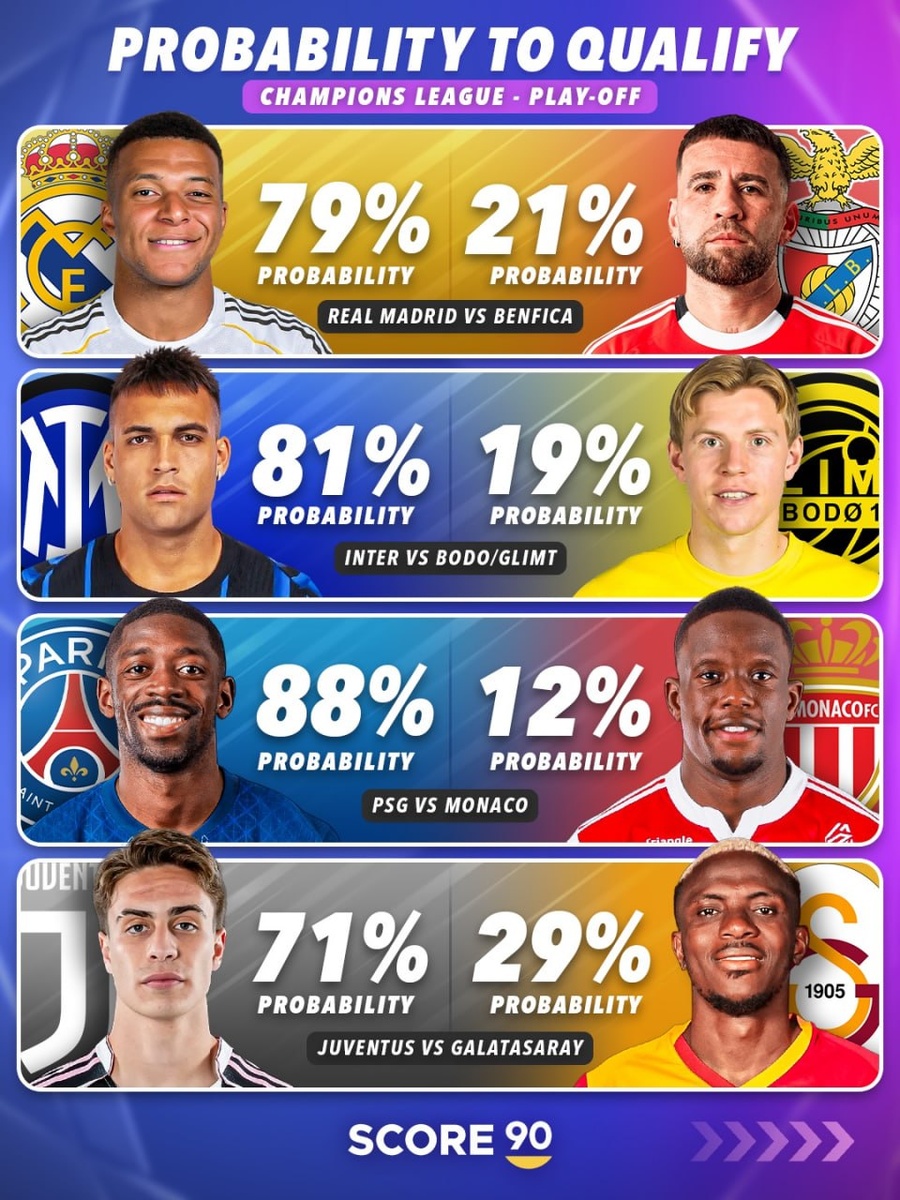 Вероятность выхода в 1/8 ЛЧ 🏆
