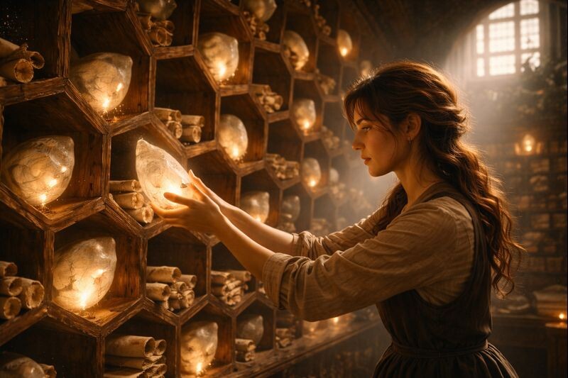 Тишина в Архиве Забвения была особого рода — густая, бархатистая, сотканная из шепота. Не шепота людей, а шепота слов, которые перестали быть произнесёнными. Стеллажи из тёмного дерева, похожие на гигантские пчелиные соты, уходили под самый потолок старого дома на окраине городка. В их ячейках лежали не книги и не папки, а свёртки, катушки, коконы из полупрозрачной, похожей на пергамент, материи. Это были «Дела» — законсервированные, подшитые и каталогизированные ненужные воспоминания, мелкие обиды, сиюминутные страхи, досадные оплошности. Всё то, что люди называли «мысемётом» — сором сознания, мешающим жить.