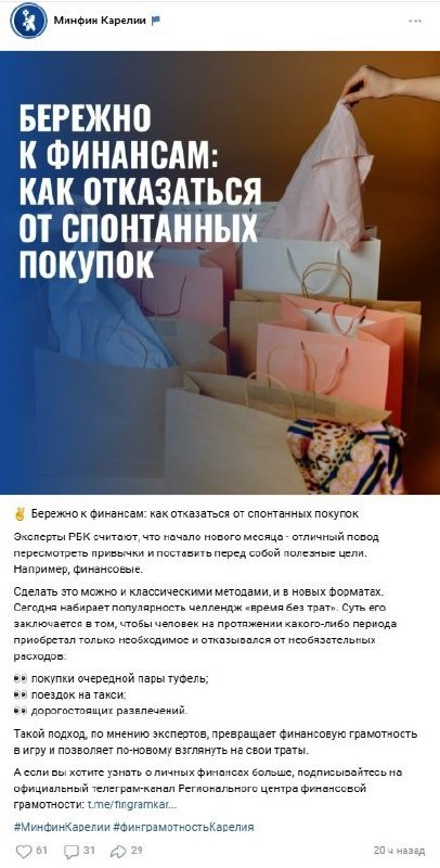 Минфин Карелии вызвал критику за рекомендации по отказу от спонтанных трат