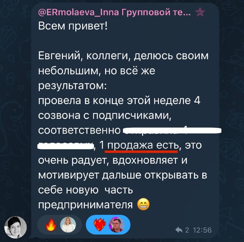 Если в канале есть 100-200 человек, значит вы уже можете делать продажи. Я очень часто встречаю психологов, которые говорят «я не хочу вести блог». Но заявки и клиентов хотят все. А в 2026 году одно без другого практически не существует. И все это понимают. На самом деле под «Я не хочу вести блог» люди имеют ввиду «Для меня это слишком сложно. Я не верю, что у меня получится сделать всё правильно» У многих за спиной уже есть негативный опыт. Можно выкладывать посты каждый день месяцами, но не видеть результата. А всё, что нужно для продаж на старте, и при этом не выгорать, это: — делать только ключевые действия — научиться создавать доверие — быть понятным для подписчиков Как это сделать? Покажу на предобучении, стартуем уже в эту среду 👉🏻 ссылка на участие Для участников дам возможность попасть в фокус-группу, в которую возьму максимум 6 человек и лично помогу привести клиентам через телеграм.
