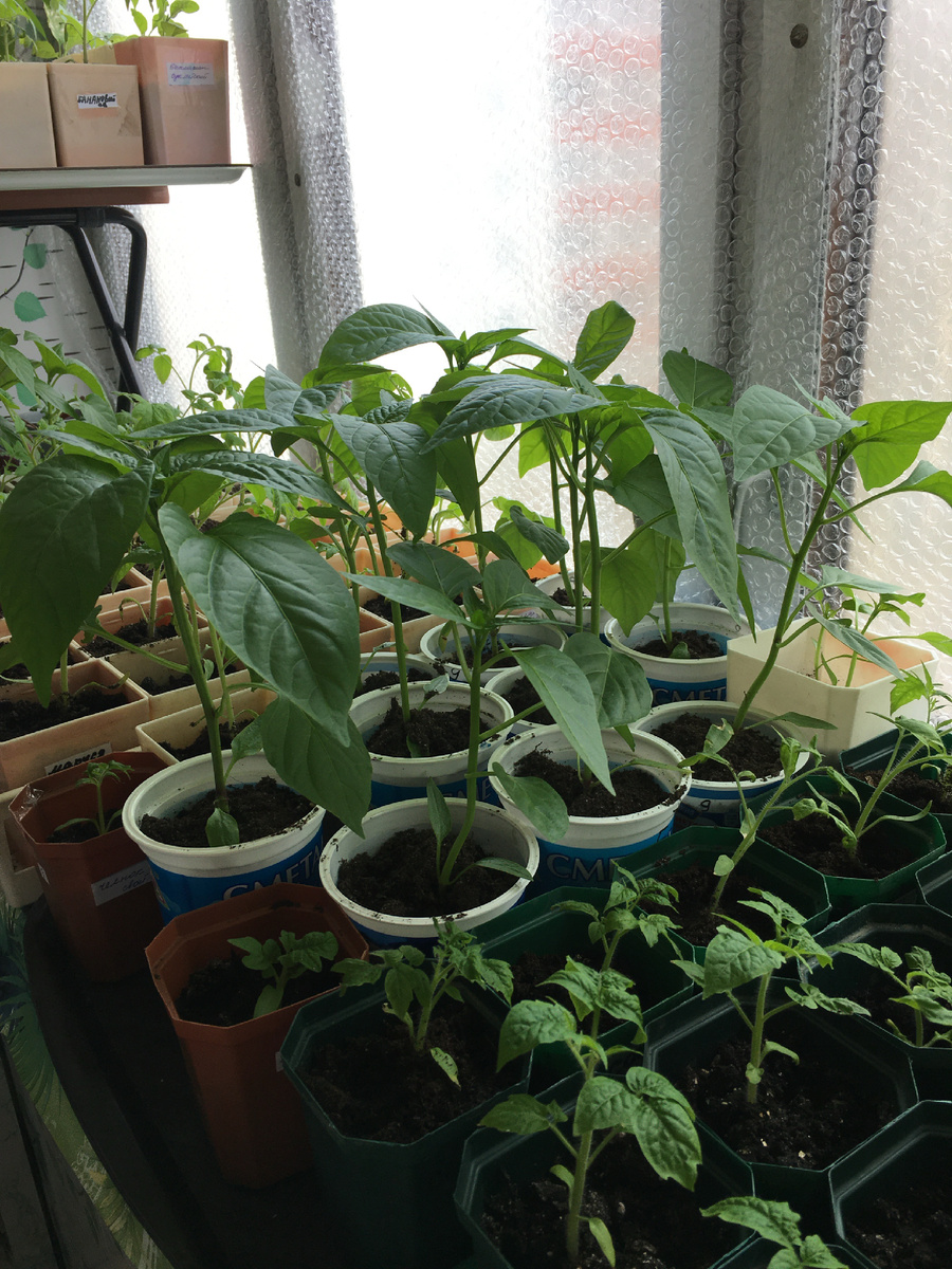 Посмотрите на разницу двух фотографий. В 2023 году томаты росли как на дрожжах, в то время как перцы ( приглядитесь на фото за томатами) были совсем малюсенькие. Когда высаживала в теплицу, то думала что и не дождусь перцев. Но они окрепли, плодоносили, хотя не так активно как раньше. А вот томаты пришлось высаживать наклонно. В чем был фокус так и не поняла. В 2025 году высаживала рассаду в теплицу на майские праздники.