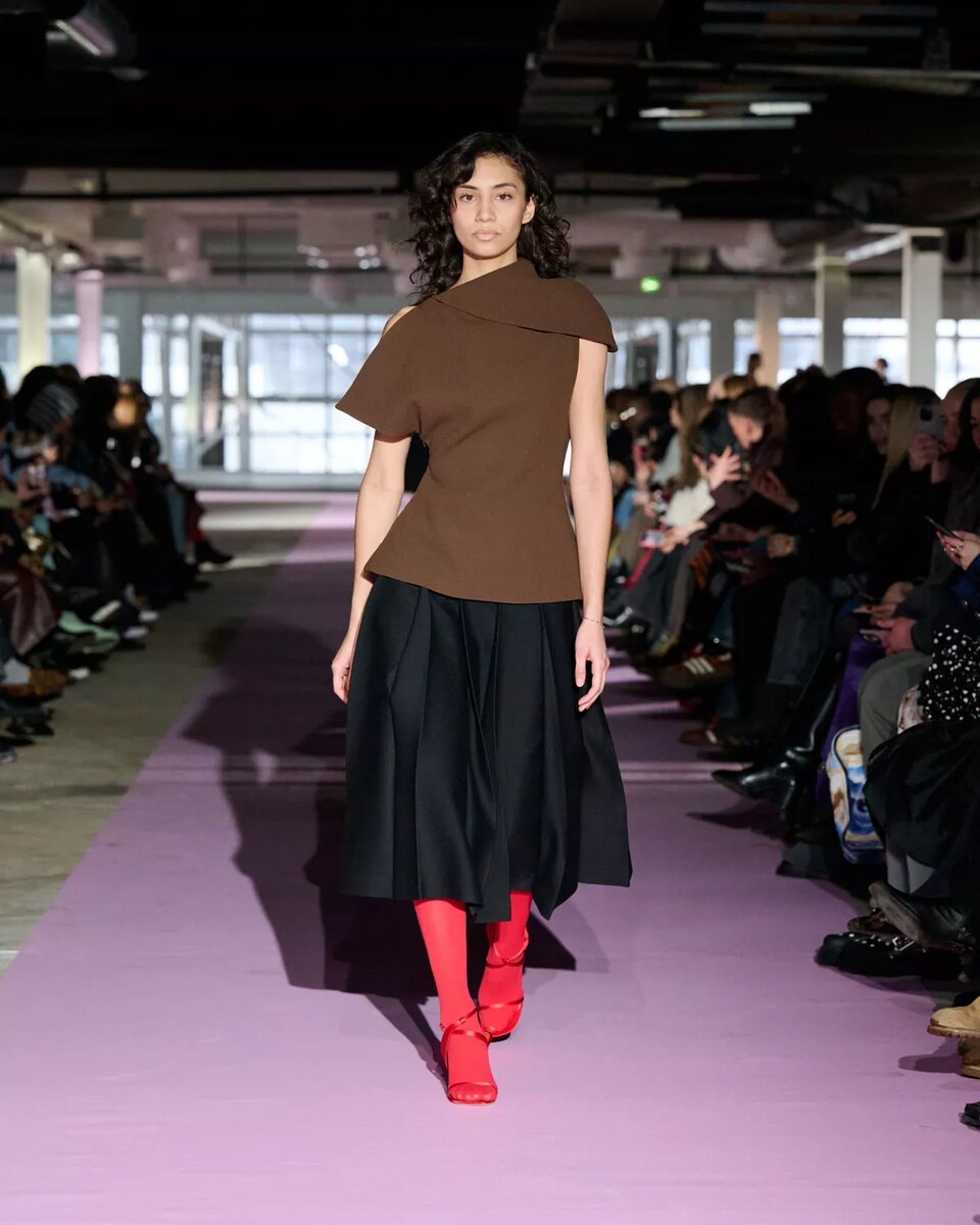 Сегодня давайте переведём взгляд с высокой моды (Haute Couture) на готовую одежду (Prêt-à-Porter). Без блеска подиумных фантазий — к вещам, которые реально живут в гардеробе. И один из показов, который в этом сезоне приятно удивил, — Forza Collective осень–зима 2026. Бренд Forza Collectiveделает ставку не на громкие темы, а на постепенное развитие собственного языка. Его дизайнер, Кристоффер Конгсхауг, сам называет это «созданием гардероба». И в этой коллекции это особенно чувствуется. Источником вдохновения для коллекции стала тётя дизайнера — важная и личная фигура в его жизни. Не конкретный образ и не визуальная цитата, а настроение, память и ощущение женщины, которая жила смело, много видела и не боялась быть собой. Эта история стала для дизайнера точкой опоры и тихим ориентиром при создании коллекции. Показ прошёл в строгом индустриальном пространстве, но на бледно-розовой дорожке. И вещи сразу фокусируют внимание не на себе, а на женщине. Платье из полупрозрачной сетки, строгий с