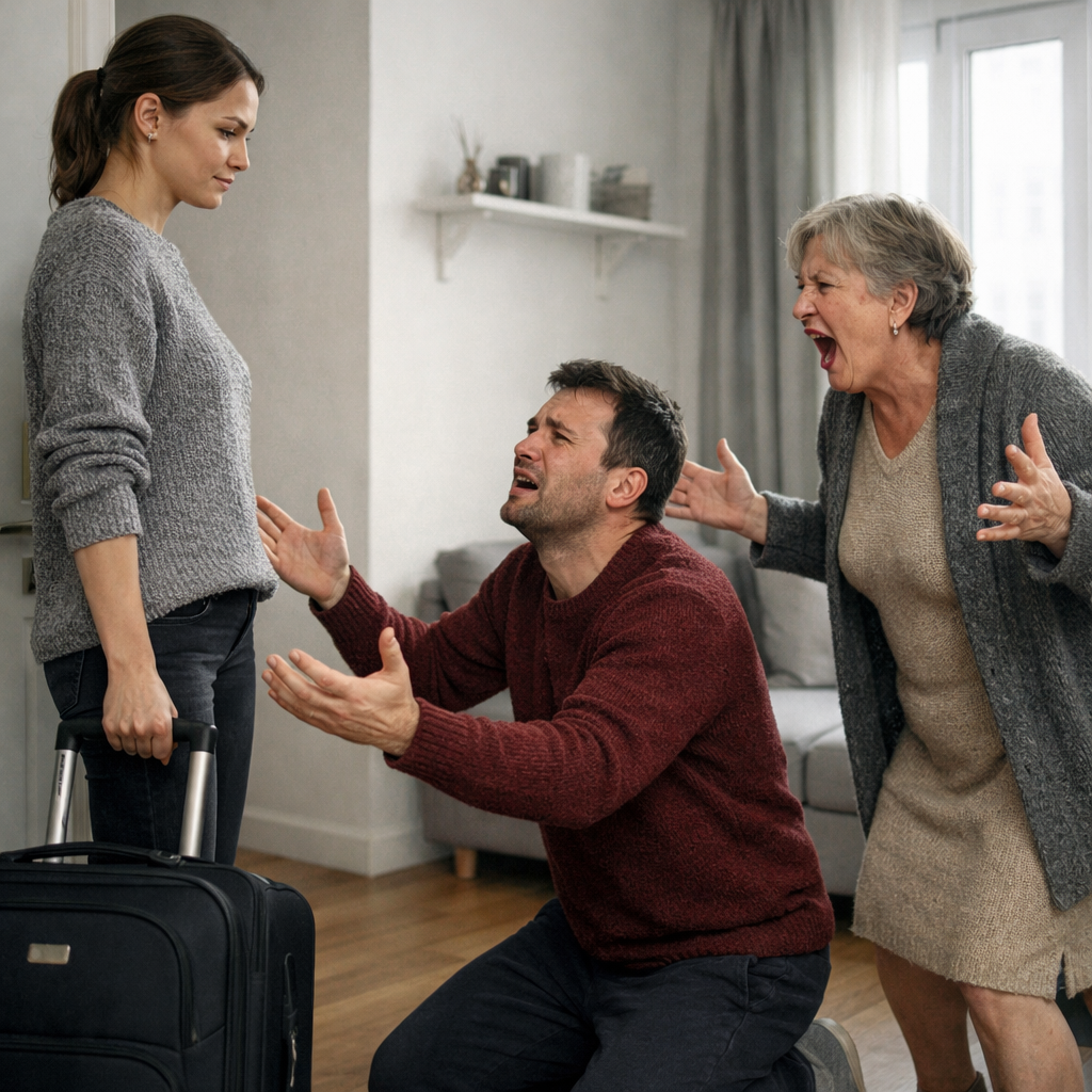 Он посмотрел на мать, потом на меня. И вдруг правда опустился на колени. Прямо там, на мокром асфальте, в домашних тапочках. Сложил руки молитвенно.