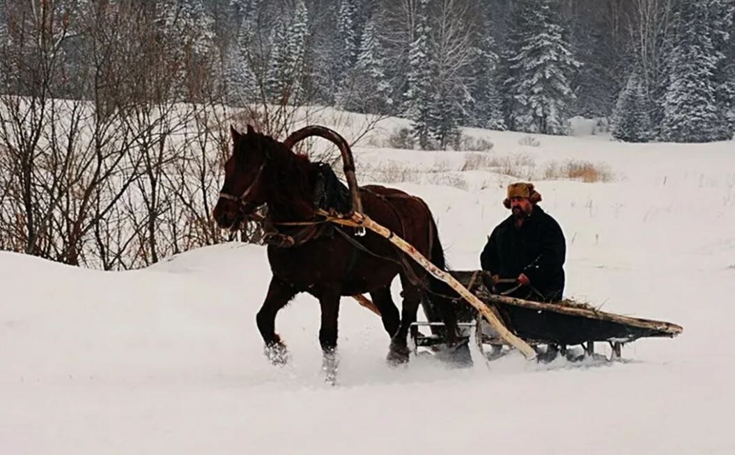 Когда он сел в сани, на деревню уже опускались сумерки. Лошади фыркнули, дёрнулись, и дорога потянулась вперёд — тёмная, зимняя, скрипучая.