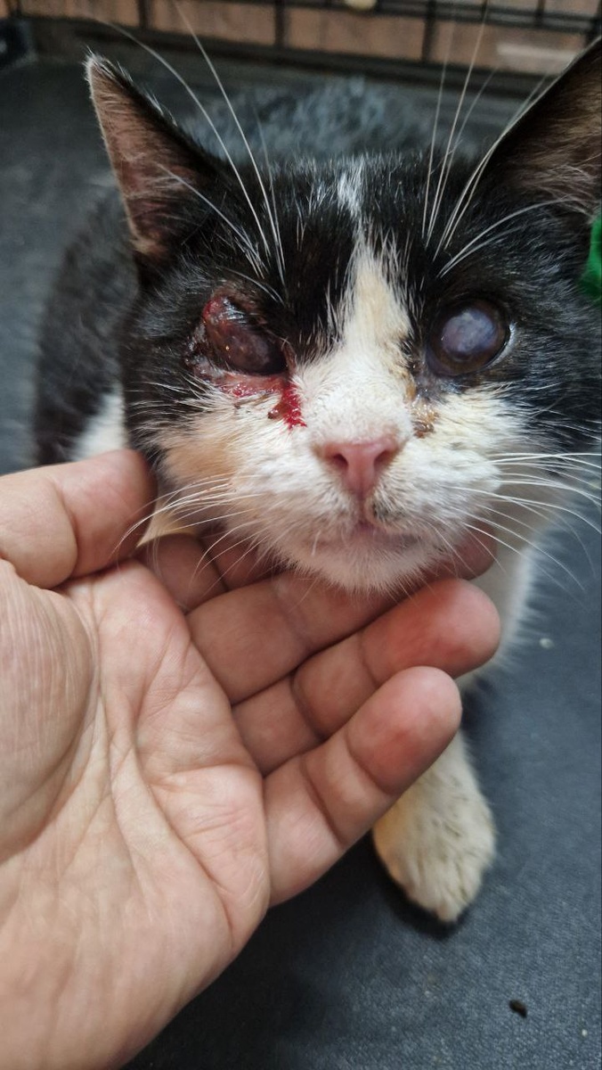 Вы на канале АНО Кошкин Дом Донецк. Это проект спасения животных с линии фронта, волонтёры вывозят кошек и иногда собак в Донецк, где лечат и потом стараются их пристроить. А также делают много другого важного и полезного. При близких прилетах маленькое животное имеет шанс не поймать осколки - их разлет выше. А вот глаза и уши страдают больше всего. Кошка ведь не понимает, что сейчас прилетит снаряд, надо зажмуриться и открыть рот, чтобы снизить удар по барабанным перепонкам. Поэтому потеря или снижение слуха, травмы глаз в условиях военных действий - это не редкость. Кошке назначили обработку того, что осталось от глаз флоксалом и корнегерелем. Регенерация роговицы способна удивлять в некоторых случаях. Иногда глаз "выростает" как будто бы из ничего. В остальном кошка здорова. Если вдруг она отозвалась в вашем сердце, напишите в ТГ админу: @KoshkinDomDonetskAdmin. Идеальный вариант для неё - это семья с 1-3 неагрессивными кошками и с возможностью при необходимости свозить в клинику. В