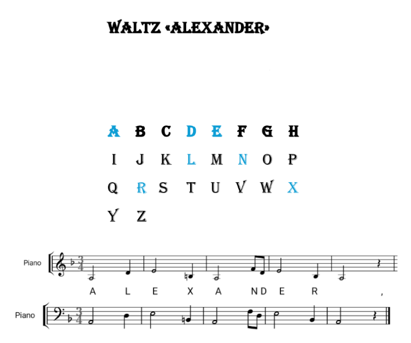 Александр – это любимое имя с самого детства. Если «перевести» его в ноты, получится интересная тема.
