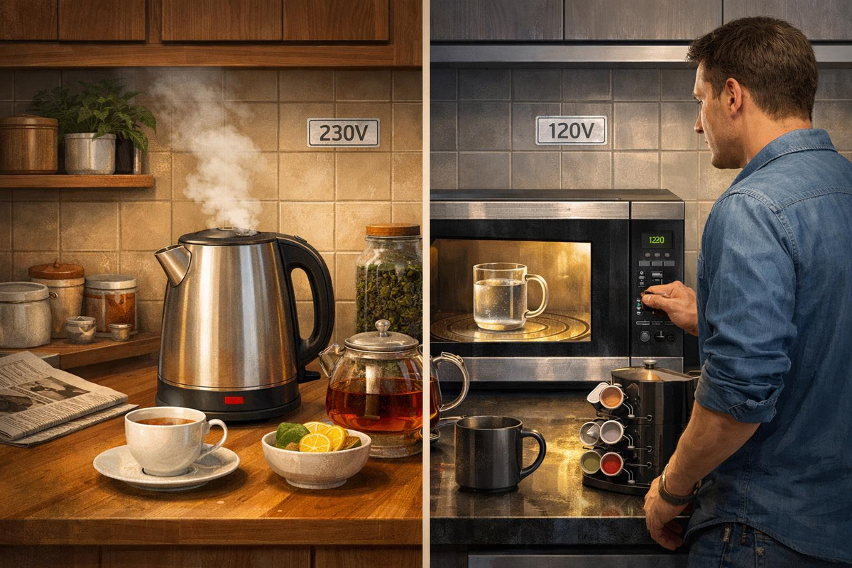 Любопытная статистика: электрические чайники в Соединённых Штатах встречаются значительно реже по сравнению с европейскими странами. По разным оценкам, в американских домохозяйствах распространённость эл.чайников оценивается на уровне 10–30 %. Тогда как в странах с развитыми традициями чаепития - свыше 80%. Одной из ключевых причин такого «перекоса» являются технические особенности электросетей. Стандартное напряжение в большинстве европейских стран составляет 220–240 В, что позволяет эл.чайникам развивать большую мощность и быстрее доводить воду до кипения. А в США стандартное напряжение — около 110–120 В, из-за чего бытовые электрочайники кипятят воду медленнее. Кроме технического фактора, играет роль и культурная специфика: в США традиционно больше потребляют кофе, и кофейное оборудование (капельные кофеварки, pod-системы) распространено повсеместно. Многие американцы для нагревания воды для пакетированного чая или растворимого кофе используют микроволновую печь или эл.плиту, (чт