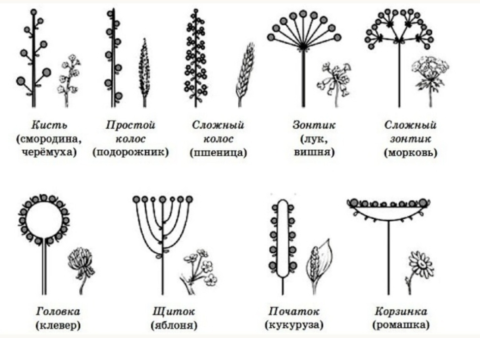 Теперь можно обсудить типы соцветий. Помните из курса школьной ботаники, какие бывают типы соцветий?
