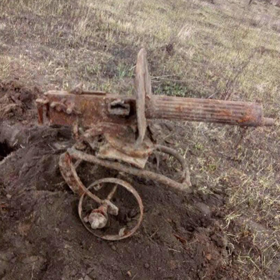 История началась без пафоса. Не с архива, не с музейного хранилища и не с аккуратной витрины под стеклом. Она началась с характерного сигнала в наушниках — короткого, настойчивого, такого, от которого у любого поисковика учащается пульс. Парень вышел в поле обычным маршрутом. 2020 год. Ни экспедиции, ни громкого проекта — просто человек, металл и земля. Сначала показалось, что находка будет стандартной: обломок сельхозтехники, старая арматура, фрагмент снаряда. Земля часто обманывает ожидания. Но на глубине показался металл другой формы. Не хаотичный, не рваный. Цилиндрический. Тяжёлый. И слишком длинный, чтобы быть случайным. Когда слой за слоем уходила почва, становилось ясно: под землёй лежит не просто железо. Там — силуэт. Пулемёт «Максим» не нуждается в представлении. Его узнают даже те, кто далёк от оружейной истории. Характерный кожух ствола с рёбрами охлаждения, массивный корпус, щит, колёсный станок — всё это складывается в образ, который десятилетиями ассоциируется с войной,