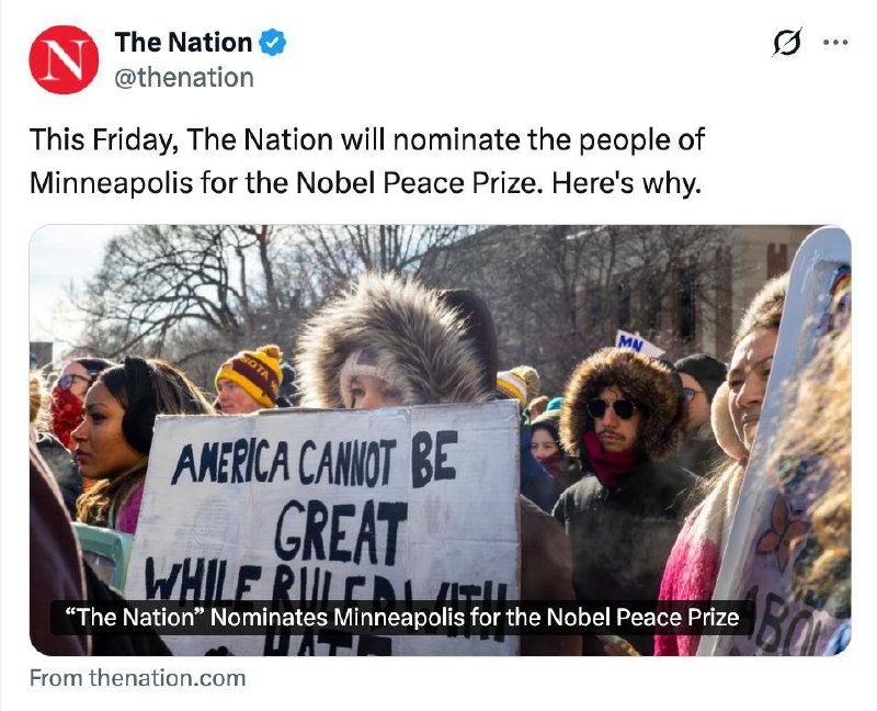 The Nation nominates MINNEAPOLIS for the NOBEL PEACE PRIZE