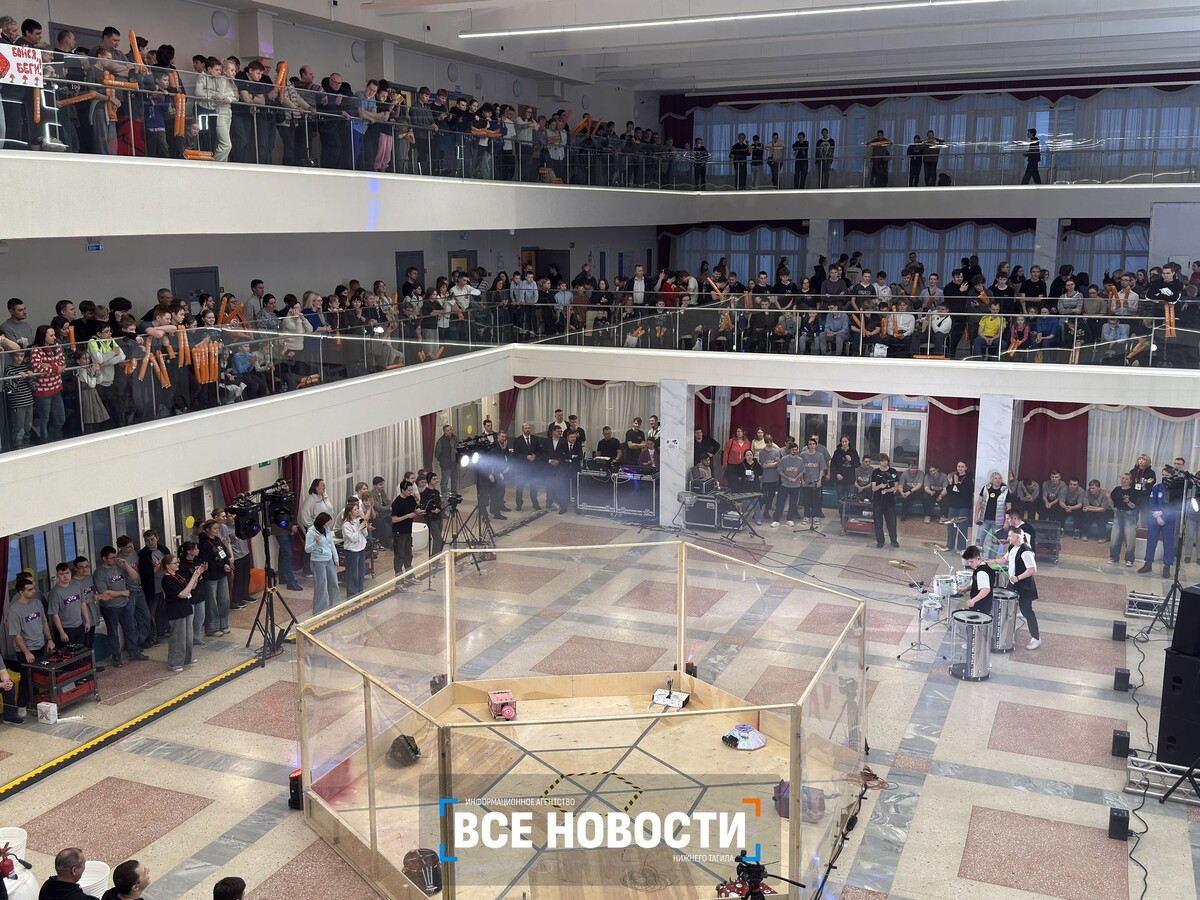 Лязг металла сквозь рёв толпы можно было услышать в Городском дворце детского и юношеского творчества. Здесь развернулся новый сезон «Битвы роботов». Боролись команды второкурсников УрФУ — головного вуза и тагильского филиала. Специально для поединка студенты инженерного бакалавриата ЕВРАЗа придумали и сконструировали дистанционно управляемые боевые машины. О том, чем закончилась их битва в октагоне, читайте в материале ИА «Все новости». Эта «Битва роботов» — уже вторая в Нижнем Тагиле. Год назад за схватками с участием пяти команд можно было наблюдать в «Металлург‑Форуме». На этот раз сражаются восемь роботов. Их создатели учатся на курсе инженерного бакалавриата, специально разработанного преподавателями УрФУ в партнерстве с металлургами. Схватка боевых машин — результат работы студентов за полгода. Изменился и регламент соревнований. Если год назад в октагон пускали боевые машины до 20 кг, то теперь дрались «легковесы» — роботы до 10 кг. А в остальном у участников была полная творче
