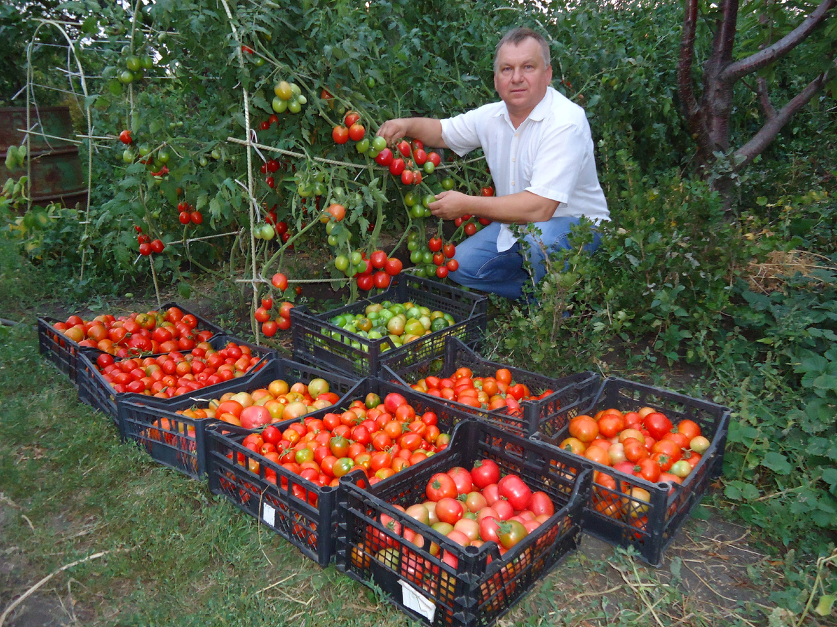 В 2024 году деревья более-менее оклимались и зацвели. Мы вырастили много рассады помидоров, нужное количество перцев и баклажанов. Я в выходные дни 1и 2 мая высадил где-то 120 сортов и гибридов помидоров. Сажал по 2-4 растения каждого сорта. В общей сложности больше 340 штук. Сажал под пластиковые ведра и под стекло, как в микропарничек. Но в ночь с 4 на 5 мая в нашей местности был заморозок до – 9 градусов. Местами до – 12 градусов. Не пасли даже ведра и белый укрывной материал. Вся высаженная рассада погибла. Осталось немного той, что не успел высадить.