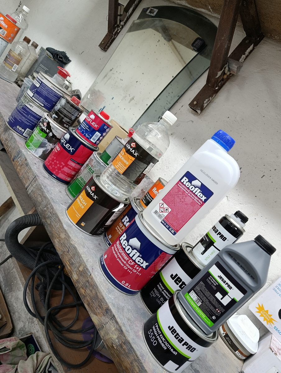 Выбор пал на три эпоксидных грунта и на три кислотных. Так как кислотные грунты необходимо перед покраской перекрывать акриловыми грунтами, то беру и три акриловых грунта.