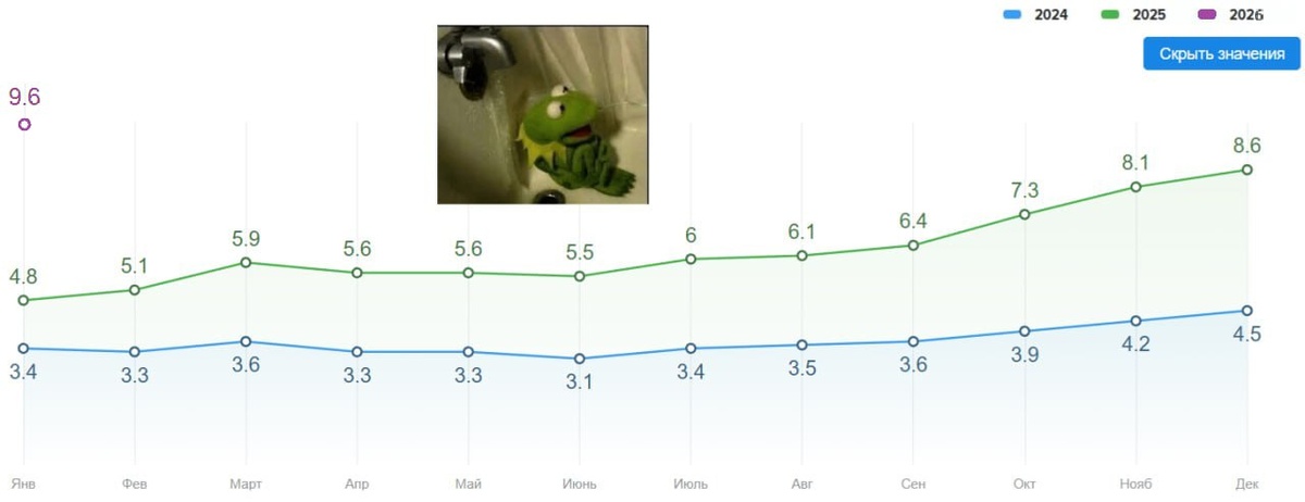 Это следует из аналитики hh ru. Если быть точным, то соотношение составляет 9,6. Таким высоким индекс не был за всё время ведения статистики. Конкуренция за рабочие места растёт 7 месяцев подряд! Показатель января 2026 года в два раза выше, чем год назад. Впрочем, ситуация сильно разница в зависимости от профобласти. Самая высокая конкуренция за работу в: 🔸 Стратегия, инвестиции, консалтинг — 46,9 🔸 Искусство, развлечения, массмедиа — 45,2 🔸 Высший и средний менеджмент — 33,7 🔸 Маркетинг, реклама, PR — 27,2 Самая низкая конкуренция в: 🔸 Розничная торговля — 2,8 🔸 Медицина, фармацевтика — 4,2 🔸 Производство, сервисное обслуживание — 6,3 🔸 Продажи, обслуживание клиентов — 7,6 #Работа @if_news