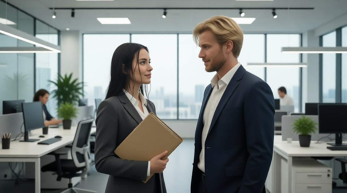 Они вошли. Аля села напротив, аккуратно положив папку на край стола. Но он пододвинул ещё один стул, поставив его прямо рядом с собой, и попросил: