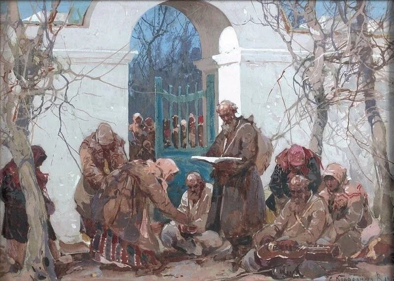 Насушенные и отложенные на чёрный день сухари из полученных «за ради Христа» куличей кончились уже к началу лета, и перед женщинами вновь замаячила угроза голодной смерти. Количество просящих милостыню росло с каждым днём, а щедрость обедневшего народа уменьшалась прямо на глазах и вскоре, казалось, вообще готова была сойти на нет. Но даже в этих условиях предприимчивая Митрофановна не опускала рук. Порывшись в своём сундуке, она достала оттуда несколько красивых шёлковых платьев, подаренных ей когда-то «со своего плеча» доброй барыней Марьей Алексеевной - матерью Татьяны.