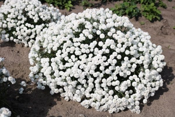Это белоснежное чудо Жемчужница ,считается одним из самых распространённых неприхотливых растений. Жемчужница, тем кто предпочитает высаживать в своём саду многолетние цветы непременно стоит присмотреться к этому растению. У этого растения масса достоинств. Помимо красоты, главным является неприхотливость. Это растение устойчиво к различным вредителям и болезням. Самое большое достоинство заключается в простоте в выращивания, хорошей зимостойкости, длительном обильном цветении, быстром росте и отличной декоративностью. В высоту достигают не более 60 см, которые густо покрыты небольшими белыми цветами. Цветки махровые, белые с перламутровым отливом, шаровидные размером 1 см и их так много, что в разгар цветения куст похож на белоснежное облако. После того как отцветёт , соцветия нужно удалить и тогда из пазухов нижних листьев появятся многочисленные повторные цветочки, которые будут прекрасно цвести до самой осени. Растение может расти на любых практически почвах, даже на песчаных и бед