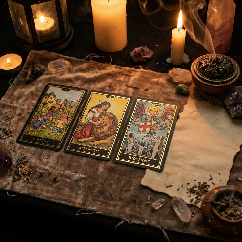 - Значение карты: 6 Кубков символизирует ностальгию, воспоминания о прошлом, тёплые чувства, связанные с былыми временами, и иногда идеализацию того, что было. Эта карта часто указывает на сильную эмоциональную связь с прошлым, желание вернуть утраченное или сохранить что-то дорогое сердцу. В контексте скрытых чувств она может говорить о том, что человек прячет свою тоску или привязанность к прошлому с вами.